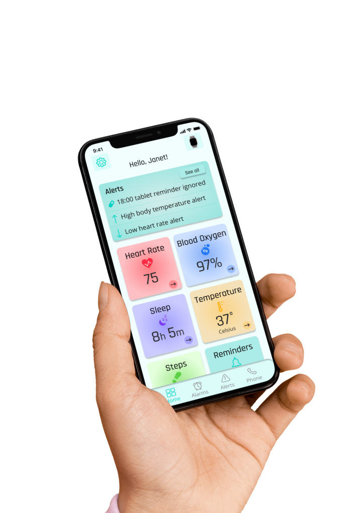 Anya Tech tasked Bang Creations with designing an intuitive interface for both a remote care smartwatch for the elderly and accompany app, that is usable by both the end user (elderly individuals) and their career. Our goal was to create a solution that supports the independence of elderly users while giving peace of mind to their carers.